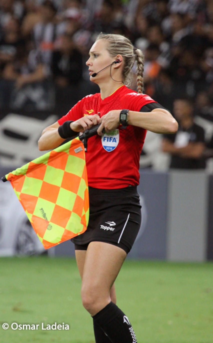 primeira mulher a comentar arbitragem na televisão brasileira em 2017, pela Fox